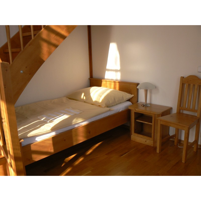 Nekuřácký pokoj vybaven v jednoduchém a vzdušném stylu pohodlným a moderním nábytkem, pracovním stolem se židlemi, dostatkem úložných prostor a prostornou moderní koupelnou se sprchovým koutem a WC.